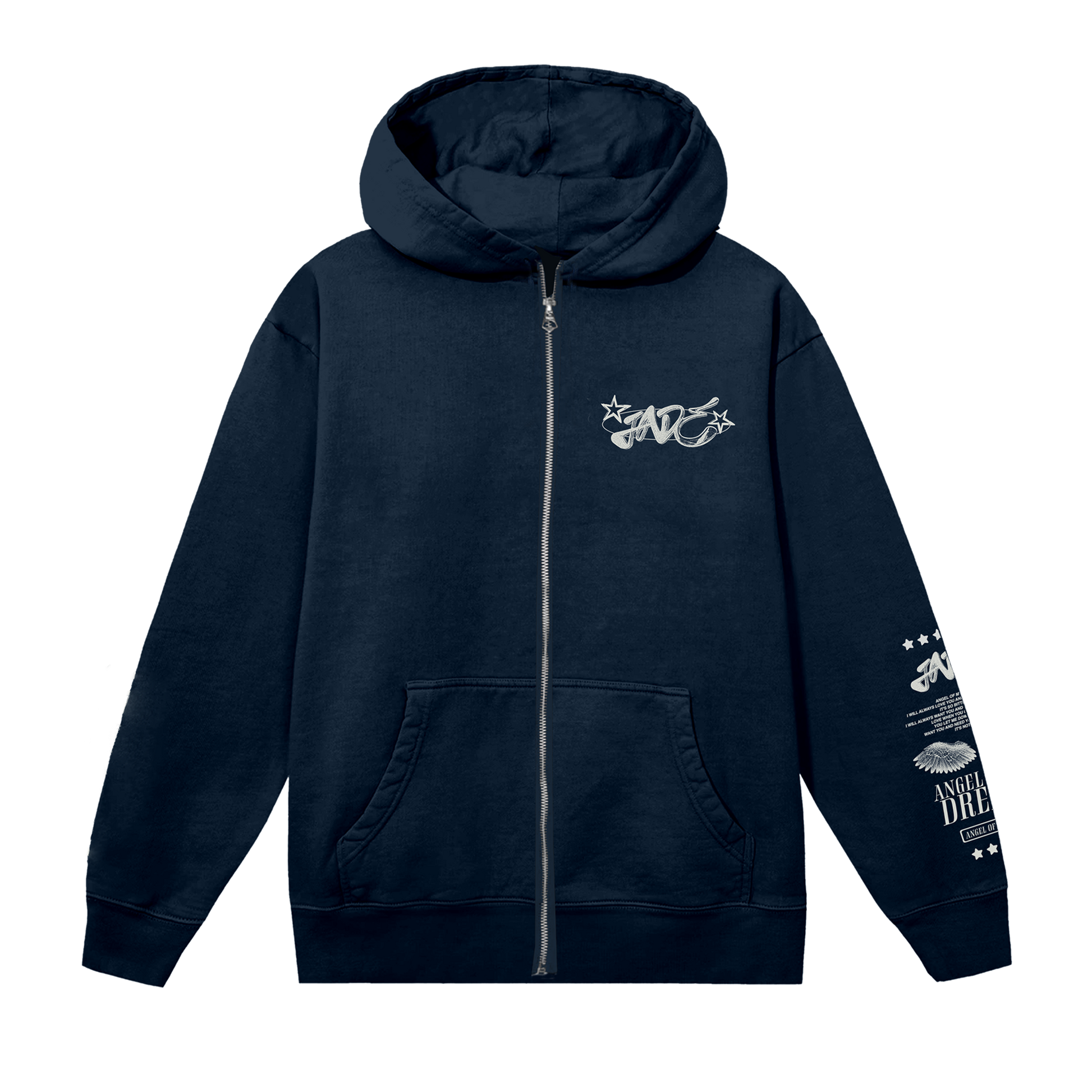 The angel of my dreams dark navy zip hoodie celebrates JADE's THAT'S SHOWBIZ BABY! 2026 tour.